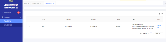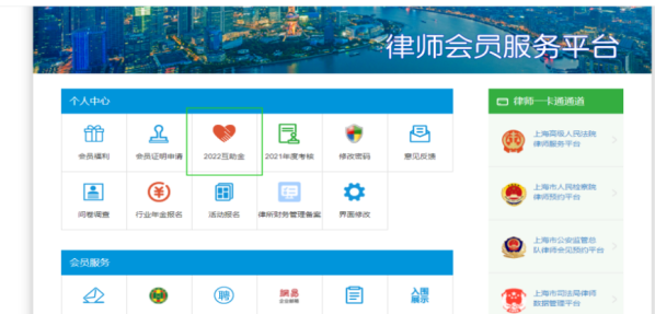 律师事务所登录东方律师网,进入【会员中心】,选择【202X互助金】模块,点击进入互助金报名页面。如图所示: