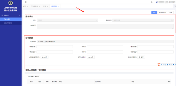 最上方为报名表状态,无法手动修改,根据报名表的状态自动更新,默认为“未提交”状态。