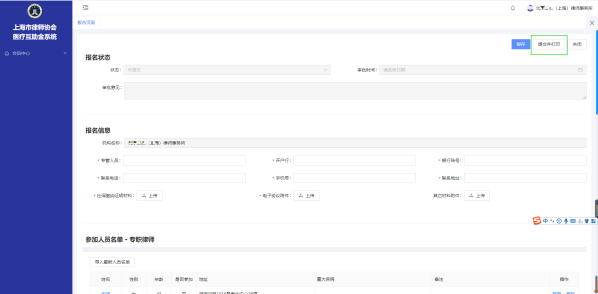 报名人员信息完善后,点击右上角“提交并打印”按钮,即可提交并打印互助金报名表。