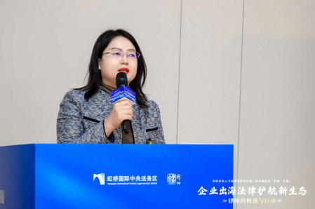 上海市闵行区南虹桥商会秘书处对外联络部主任李晓以《出海企业的法律服务需求、挑战与期待》为主题,以商会覆盖的 156家商务区核心区优质企业的生态数据为基础,系统性提出企业出海的“四阶段演进模型”:从“物品出海”到“人员出海”,再到“资产出海”,最终迈向“跨境布局”。