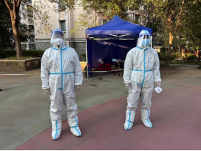 政明所陈潇翔律师向宝山区友谊路街道行知二中隔离点、宝山区大场镇保利熙悦小区捐大白服、大蓝服各10套。