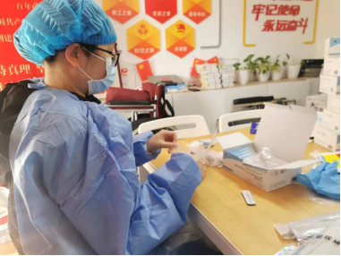 海彻律所陈丽琴律师在浦东新区唐镇绿波苑居委会做抗疫志愿者,参与社区巡逻,送快递,登记整理表格、抗原拆分等工作。
