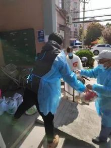 艾克森律所沈逸飞律师在顾村镇苏家浜路388弄小区辅助医护人员完成了核酸采样工作。赵长坤律师为居民派送莲花清瘟胶囊。