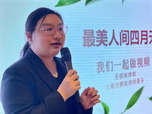 虹口区女律联副秘书长、上海市鹤铭律师事务所吴祺桢律师,通过讲解短视频在普法方面的优势、如何利用微博热搜榜的内容、及时有效挖掘出普法的内容和切入点,让视频的普法内容能更好的传播和被网民所接受。同时针对视频制作,结合互联网碎片化信息的特点,分享在微博平台,如何更好的进行普法宣传。