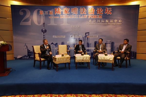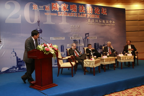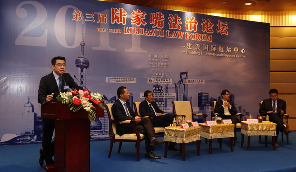 2011年10月27日,由中国海事仲裁委员会、鸿发国际和浦东新区司法局联合主办的第三届陆家嘴法治论坛在上海国际会议中心成功举办。中国国际贸易促进委员会副会长董松根,浦东新区人民政府副区长陆鸣,上海市司法局副局长刘忠定,中华全国律师协会副会长吕红兵,鸿发国际会长盛雷鸣出席论坛并致辞。浦东新区司法局局长李泽龙主持论坛开幕仪式,中国海事仲裁委员会副主任于健龙,上海市法学会副会长李继斌,上海仲裁委副主任方雄、浦东新区司法局副局长金更良等领导出席论坛。