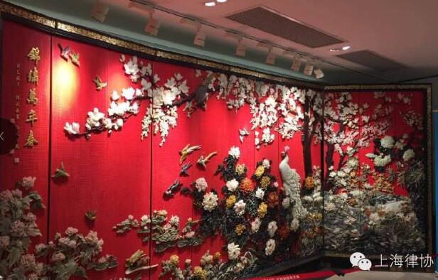 第二部分是参观活动。朵云轩电子商务有限公司副总经理傅海英带领律师们详细参观了在艺术中心参展的非遗作品,为大家一一详细介绍了织造技术、顾绣、玉雕、竹刻等各个系列作品的历史沿革、精细工艺以及创作它们的大家,让参观的各位更加深入地体验和了解中国的非物质文化遗产,体会我国深厚的文化底蕴。