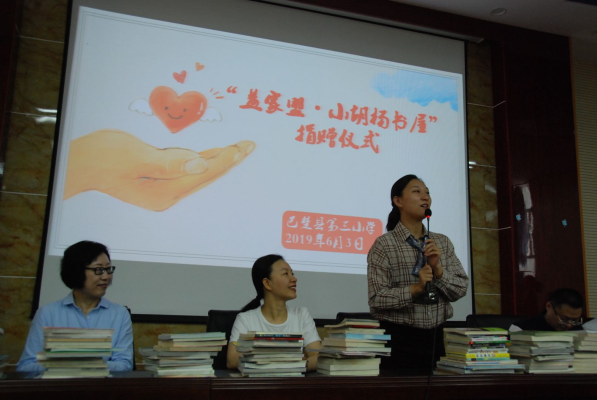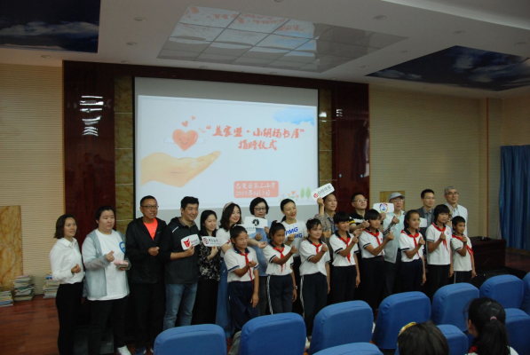 6月3日上午,“益家盟”一行来到这次行程的主要活动所在地——巴楚县第三小学。在学校大礼堂,隆重举行了“小胡杨书屋”揭牌仪式暨捐赠仪式,参观了学生住宿区、食堂、综合活动大楼。看到孩子们在操场上身穿汉服、做国学操;听到孩子们吹响了竖笛《小星星》、唱响了手语歌《感恩的心》;看到孩子们书写的书法作品《风华正茂》……那一刻,让我们真实地感受到了南疆孩子们的未来是那么充满希望!