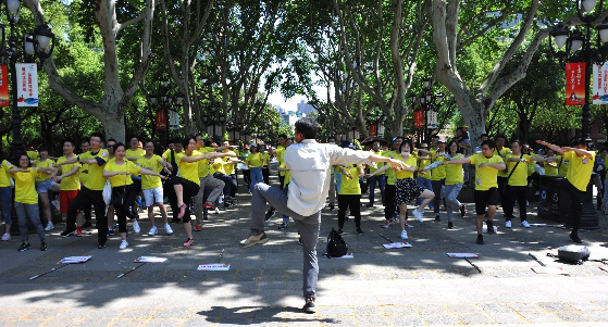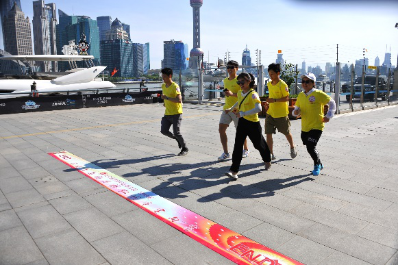 当队伍到达白玉兰广场时,工作人员早已备好笔墨。参赛队员泼墨挥毫,体会书法这一中华传统文化的艺术之美。现代的建筑景观与悠久的文化艺术交相辉映,在黄浦江畔展现出美丽虹口多元包容的城市画卷。