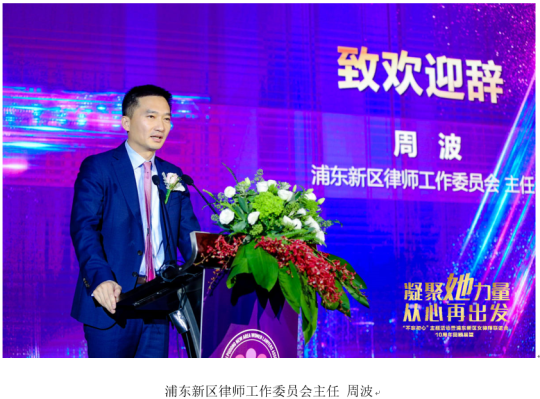 浦东新区司法局副局长、浦东新区律师行业党委书记刘龙宝,浦东新区妇联主席、党组书记陆敏之,上海市女律师联谊会会长邹甫文,浦东新区律师工作委员会主任周波,浦东新区女律师联谊会会长张玲在会上发表讲话。