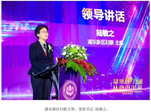 浦东新区妇联主席、党组书记陆敏之代表浦东新区妇联对浦东新区女律联成立10周年表示热烈的祝贺,她表示十年以来,浦东新区女律联这支专业力量与浦东新区妇联多次合作,开展“法律服务进社区”等公益活动,热心公益法律服务。十年只是一个开始,希望在下一个十年,浦东妇联与浦东新区女律联继续一同出发,扎根基层,谱写公益的诗与远方。