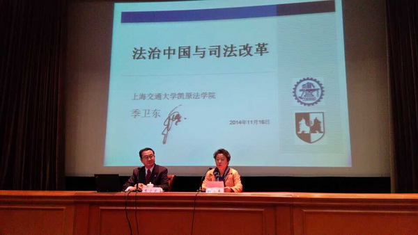 2014年11月16日上午市律协律师学院特邀我国著名法学家、教育部长江学者特聘教授,上海交大凯原法学院院长季卫东教授做“法治中国与司法改革”的主题报告。报告在上海图书馆报告厅举行,近800名律师到场学习听取报告。