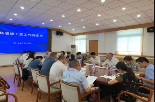 7月15日下午,新一届杨浦律工委召开工作座谈会,律工委主任、副主任、部分委员参加座谈,共商杨浦律事。区司法局党委书记、局长陆静,副局长周志宇出席会议并讲话。会议由律工委主任王桂喜律师主持.