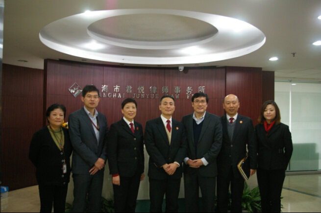 12月,上海铁路运输法院副院长朱卫东,立案庭庭长王敏敏、副庭长刘锦波等一行四人莅临君悦律师事务所考察交流,事务所主任刘正东律师、合伙人何志法、杨飞翔、叶沂萌律师及徐娟律师等人接待。