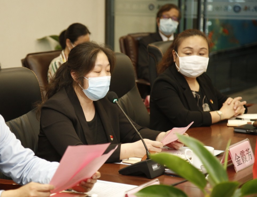 联合利华(中国)投资有限公司党总支书记金霞芳首先介绍了公司的党建情况,回忆了自去年开始合作以来,双方互相学习,合作愉快,希望继续加强共建工作。