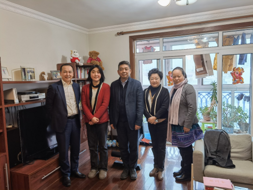 1月28日下午,鸿发国际会长季诺,秘书长陈东,黄浦律工委副主任邵万权,市律协社会责任委副主任许海霞一行四人,登门看望慰问了黄浦区参与2021年度 “1+1”中国法律援助志愿者行动的何佩娟律师,传达了鸿发国际、黄浦律工委的关心和关怀。