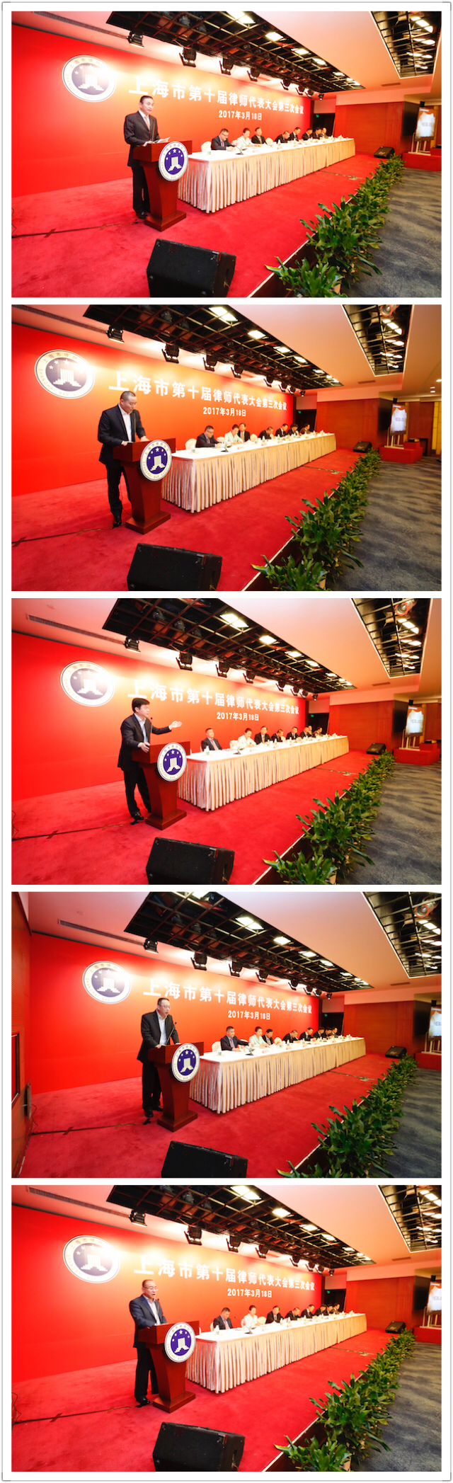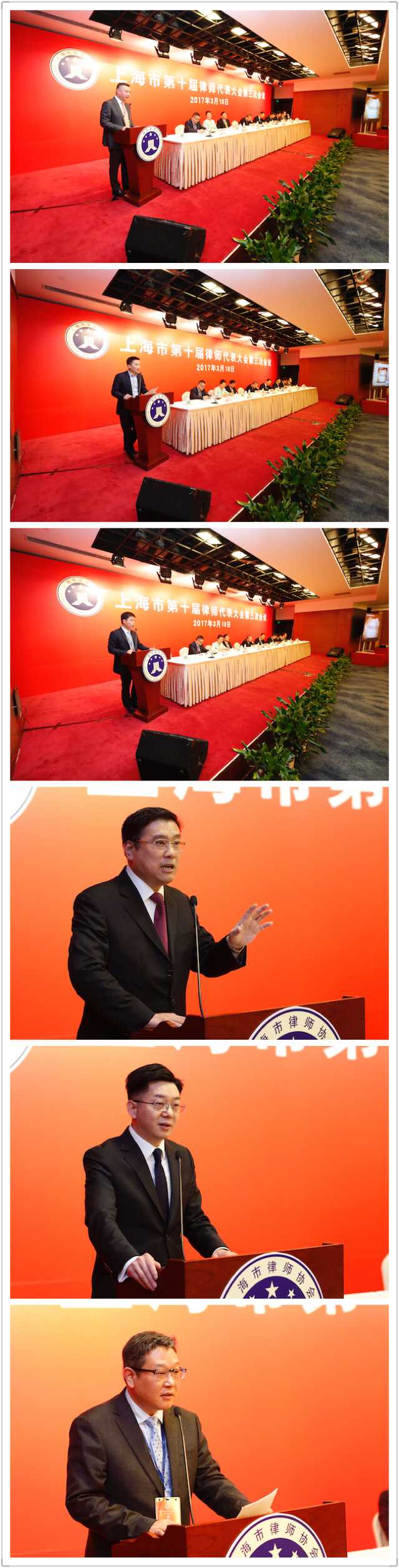 2017年3月18日,上海市第十届律师代表大会第三次会议在青松城大酒店召开,本市近300名律师代表参加会议。市司法局党委书记、局长郑善和,党委副书记、政治部主任刘卫萍,副局长、市律协党委书记王协,市社团局、市司法局相关处室、各区司法局有关领导出席会议。