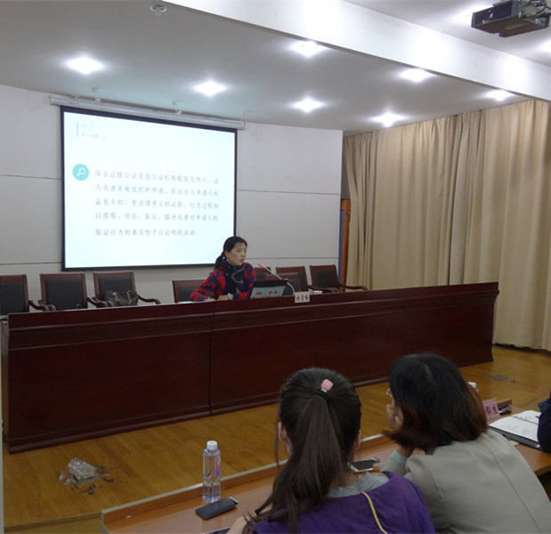 2015年11月20日下午14时—16时,闵行公证处徐雪梅主任受邀为闵行律师开展《保全证据公证实务》的律师培训讲座,培训由闵行区律工委主任周郁生主持,共有闵行区律师70余人参加培训讲座。