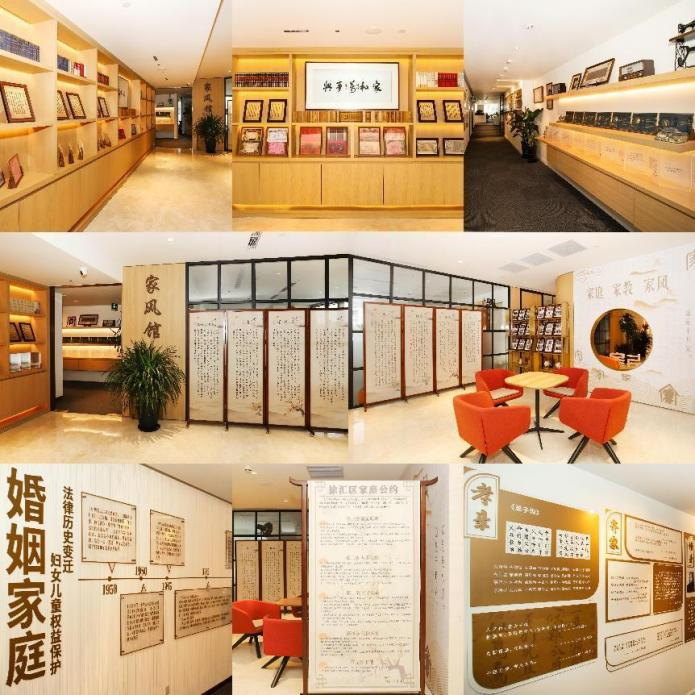徐汇区家风馆,倡导“以法治家”观念、宣传“德法共治”理念,是极具法律特色、聚焦家庭文化、弘扬优良家风、促进三家建设的复合型宣教阵地,也是徐汇区首座家风馆。