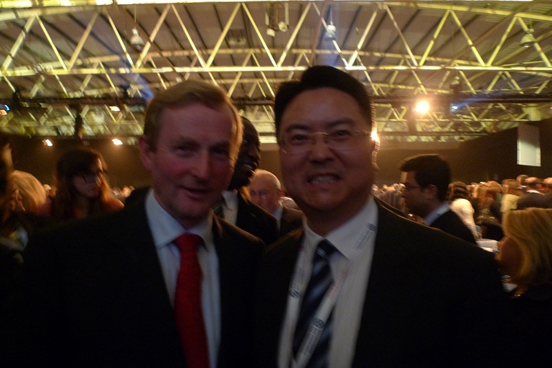 2012年9月30日至10月5日,国际律师协会2012年年会在爱尔兰隆重召开,5000多名国际商业律师云集都柏林,参加为期一周同时也是国际律师协会成立65周年的纪念盛会。2013年欧盟轮值主席国、爱尔兰总理肯尔代表东道国政府出席开幕式并致欢迎辞。肯尔总理在致辞中高度评价今年2月中国家领导人对爱尔兰富有成果的访问,他的致辞风趣幽默,具有相当感染力,博得与会各国律师的热烈掌声。北京时间2012年10月1日即中国63周年国庆节凌晨1时许,爱尔兰总理肯尔亲切会见上海金茂凯德律师事务所创始合伙人、国际律师协会理事李志强律师并与他亲切交谈。