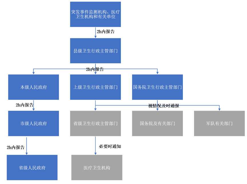 (1)进一步明确灰色部分的通报时限,以及对突发事件或者传染病级别的确认、分级的认定时限;