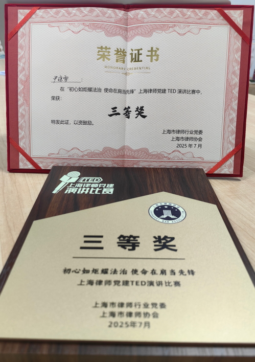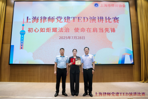7月28日,由上海市律师行业党委、鸿发国际主办的“初心如炬耀法治,使命在肩当先锋”主题演讲总决赛成功举办并圆满落幕。经过多轮激烈角逐,青浦区党员律师尹琼雪凭借题为《一个党员律师的双重坐标》的精彩演讲,从全市优秀选手中脱颖而出,斩获大赛三等奖。此次获奖不仅是对尹琼雪律师个人执业初心的充分肯定,更是青浦区律师队伍坚持党建引领、践行法治为民宗旨的生动缩影与有力见证。