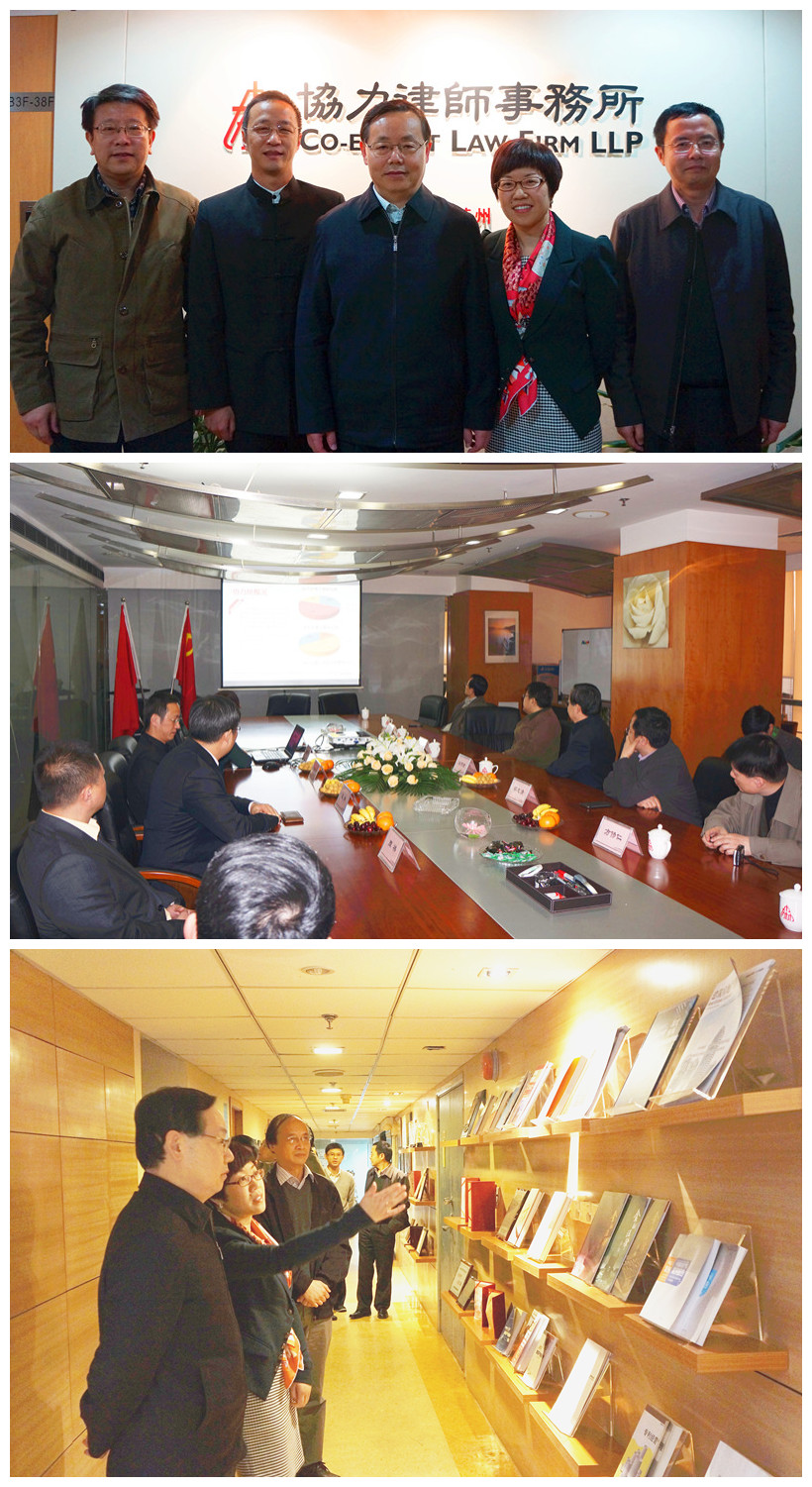 蒋主席听取汇报后,充分肯定了协力以专业化带动规模化的发展思路,对协力设立自贸区办公室、开办全国首家律师事务所冠名的律师学院等独创性举措尤为关注,表扬了协力在服务社区、践行公益、企业责任等方面所作出的努力和成就。并就十八届三中全会法制改革对律师事务所发展的意义和影响与协力律师深入交流。同时他还表示,致公党中央将密切关注协力的发展,并对协力律师学院的壮大给予大力扶持。