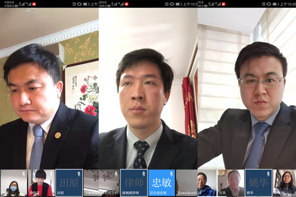 与会律师对法院能主持召开此次视频会议,均表示了衷心的感谢,认为此次疫情是推动审判工作信息化的良好契机。同时与会律师针对法院当前形式下诉讼服务存在的问题充分发表了各自的意见和建议,特别是关于在线庭审,大家围绕诉讼参加人对在线庭审所需的硬件和操作能力,对网络通畅度的要求,庭审中如何辨认证据原件,因主、客观原因退出在线庭审的法律后果等展开了热烈的讨论。建议有条件的选择在线庭审的案件,尽量选取可以调解、案件事实清楚、双方对证据都无异议的案件。针对一些的特殊的案件是否实用在线庭审,也希望法院充分考虑个案的情况下充分听取律师意见,不做一刀切。针对大家在会上提出的立案问题,何吉英庭长有针对性的一一作了回复和解释,并表示疫情期间立案庭工作人员紧缺,但尽量保证立案工作顺利开展。