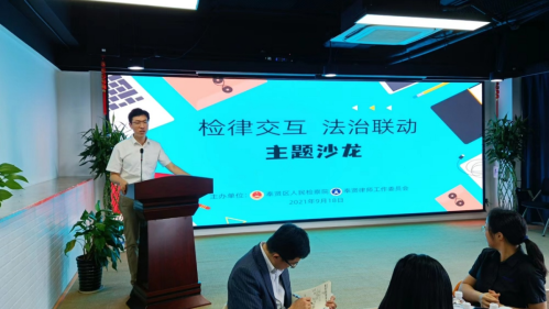 为深入开展政法队伍教育整顿,落实“再学习、再调研、再落实”要求,推动“我为群众办实事”落实落地,进一步贯彻落实最高人民检察院、司法部、中华全国律师协会关于加强检律协作、推动法律职业共同体建设座谈会会议纪要精神,2021年9月18日下午,奉贤区人民检察院与奉贤律师工作委员会共同组织开展了”检律交互,法治联动”主题沙龙活动,奉贤区二十余名律师代表参与本次活动。