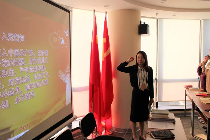 大会刚开始,由第三支部书记胡嘉奇同志带领事务所全体党员重温宣读了入党誓言,共同回忆成长历程。旗帜鲜明讲政治是我们党作为马克思主义政党的根本要求。我们党历来重视提高党员的政治觉悟。1927年10月毛泽东同志亲自撰写的“牺牲个人,努力革命,阶级斗争,服从组织,严守秘密,永不叛党”入党誓词,句句都是共产党人政治觉悟的生动写照。每位共产党员都是自愿加入中国共产党的,在入党之初都是怀着一腔热血宣誓为共产主义奋斗终身,随时准备为党和人民牺牲一切。面对党旗重温誓词,就是要号召全体党员牢记入党誓词,牢记当初入党的信念,做到终身坚守、终生不渝。