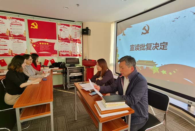 随后,我所党总支副书记狄青同志向全体党员宣读学习了中共上海市虹口区律师行业委员会《关于同意北京观韬中茂(上海)律师事务所党总支书记、副书记及下设3个党支部书记选举结果的批复》和中共虹口区司法局委员会《关于表彰“岗位建新功党员见行动”活动先锋党组织、先锋党员的决定》。