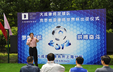 【2012年5月26日】由大成律师事务所上海分所律师们所组成的大成律师足球队于今天上午在上海浦东世纪公园球场举行了隆重的征战克罗地亚律师世界杯出征仪式。