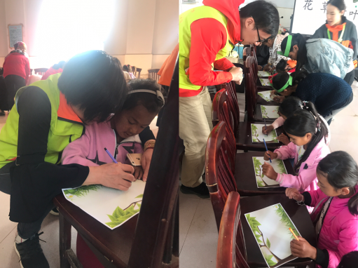 第二站是大阿永村,这里的情况要比云山村好一些。村民们不仅自行修建了砖瓦房,还有简易的篮球场供孩子们玩耍。这里会说普通话的孩子比较多,因此他们对普通话教学的接受程度很高。于是在学有余力的情况下,律师们还教了孩子们绘画。大家加入到孩子们的群体中,手把手地教他们画出一朵朵小花,希望这些孩子们也能像花朵一样绽放出最美丽的姿态。同样地,律师们也向孩子们分发了小玩具和糖果。
