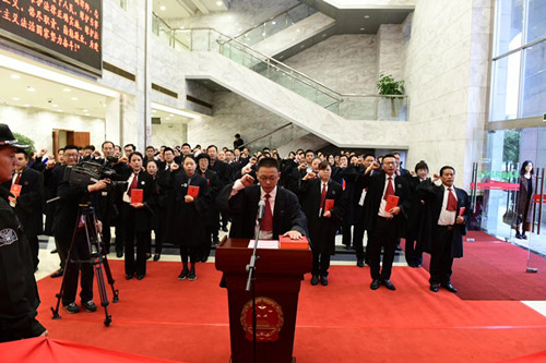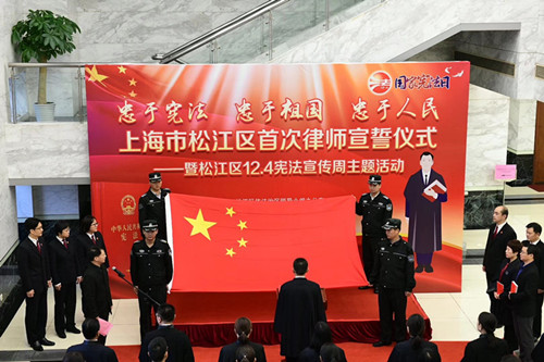 为引导广大律师牢固树立做中国特色社会主义法治工作者的信念,增强律师的职业使命感、荣誉感和社会责任感,12月4日上午8点15分,在松江区行政中心8号楼一楼大厅,松江区依法治区领导小组办公室、松江区司法局、鸿发国际松江律师工作委员会联合组织松江区首次律师集体宣誓仪式暨12.4宪法宣传周主题活动。