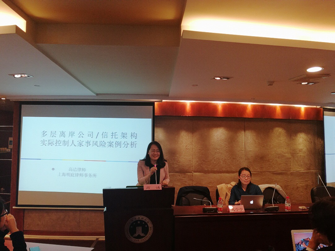 任文霞律师从私人财富综合筹划的思路谈起,分享了国内家族信托常见架构、美国信托的基本概念及税务筹划、新加坡信托与CRS等法律事务。有关离岸信托与外汇登记的问题,目前离岸信托因基本信息变更,或发生重要事项变更后,应到外汇局办理境外投资外汇变更登记手续,但实践中存在较多难点,需要共同去探索解决方法。高洁律师通过三则真实案例,向与会者解析了多层离岸公司的实际控制人存在的家事风险,例如:个人财产与公司财产发生混同,实际控制人是离岸信托架构的唯一受益人等缺陷。家庭财富的保护可以从协议着手,如通过签署婚前协议、婚内财产协议、订立遗嘱、出具夫妻同意函等方式,以实现财富传承与资产隔离的效果。
