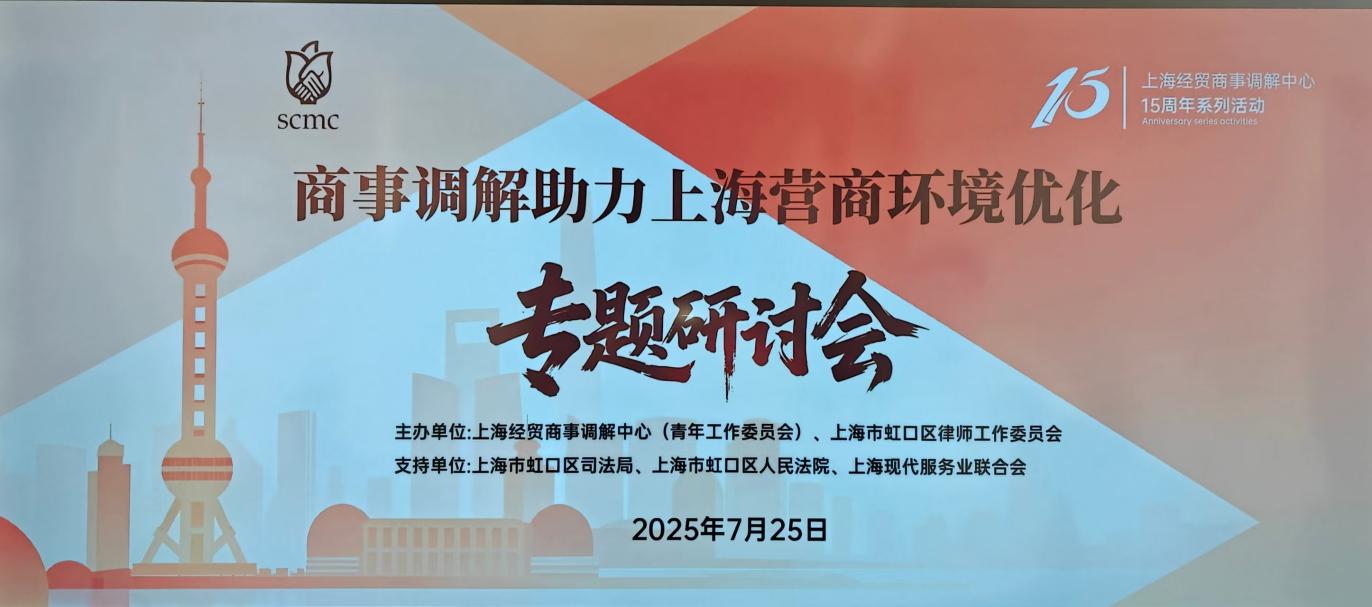 为深入探讨商事调解在优化上海营商环境中的实践路径,2025年7月25日,“商事调解助力上海营商环境优化”专题研讨会在北外滩国际法律服务港成功举办。本次研讨会由虹口律师工作委员会与上海经贸商事调解中心(青工委)共同主办,虹口区司法局、虹口区法院等单位提供特别支持。
