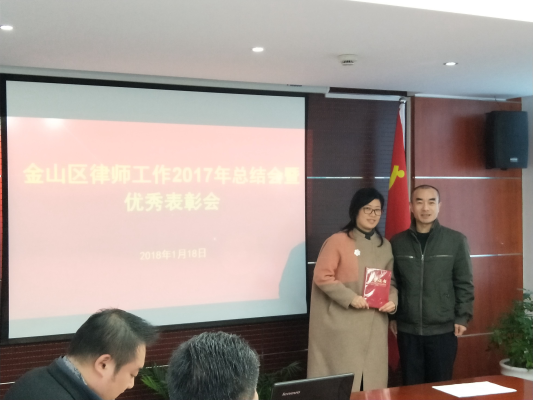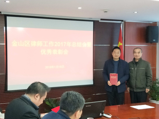 2018年1月18日上午,在金山区司法局机关二楼会议室召开金山律师工作2017年总结会暨优秀律师表彰会。会议由金山区司法局党委委员、副局长夏雷主持,公律科、金山区律工委主任、各家律师事务所主任及律师代表参加会议。