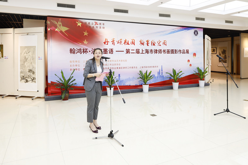 黄浦区司法局党委书记、局长刘辉在致辞中表示,此次作品展正值新中国成立70周年及恢复律师制度40周年,律师们以书画、摄影的艺术形式展示了上海律师发展40年来所取得的成就和良好的精神面貌,对弘扬社会主义法治精神、推动律师行业文化发展具有重要意义。