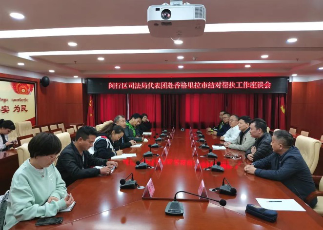 在闵行区司法局党委书记、局长金海民的带领下,代表团一行在香格里拉市看望慰问了闵行区司法局对口帮扶干部,参观了区司法局对口帮扶的香格里拉市司法局并进行座谈交流,实地参观考察了香格里拉市社区矫正中心项目建设与运行情况。