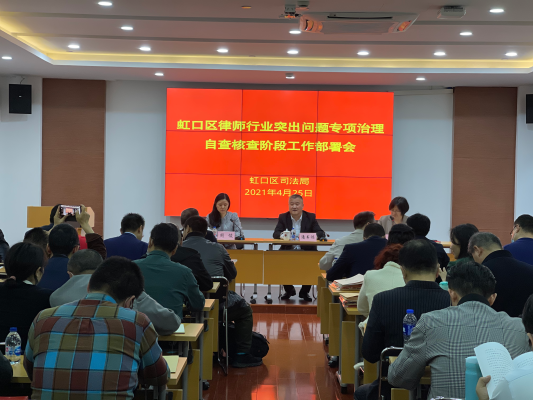4月25日下午,虹口区司法局召开本区“律师行业突出问题专项治理自查核查阶段工作”部署会。市律协副会长、市律师行业突出问题专项治理督导组第八组组长潘书鸿作督导检查工作部署,律公科科长周俊作本阶段工作部署,会议由区律师行业党委书记、副局长胡晓红主持,第八督导组部分成员参加。