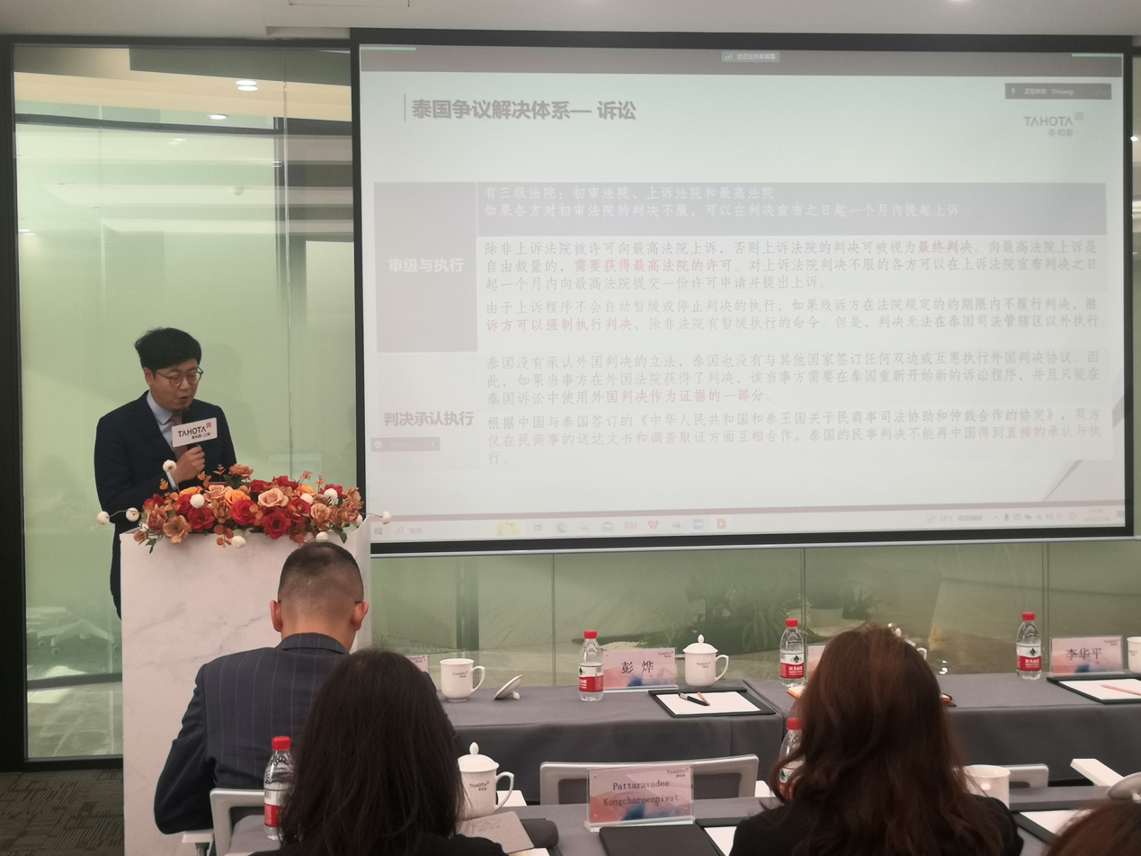 最后,泰和泰(上海)律师事务所合伙人、涉外业务部主任胡宪律师就“涉泰国投资保护与争议解决”为题向与会嘉宾详细介绍了泰国外商投资法律框架及诉讼、仲裁、调解,并结合中泰BIT和《中国东盟投资协定》对其中可能涉及的投资者与东道国之间的纠纷提出了自己的见解。