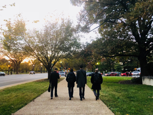在华府的生活是简单的。我们重温了久违的“两点一线”生活,日出而作、日落而息。不再有上海的驾车生活,每日的公交往返画出了大家“公寓—教室—公寓”的学习轨迹。背着双肩包穿梭于两地,大家犹如回到了青葱大学时代,重新勾起了每个人心里潜藏的朝华情怀。即使是第一天上课遇上的滂沱大雨、还是今天美国“Veteran's Day”带来的公交意外Delay,这样的生活仍带给大家难掩的悸动和兴奋。