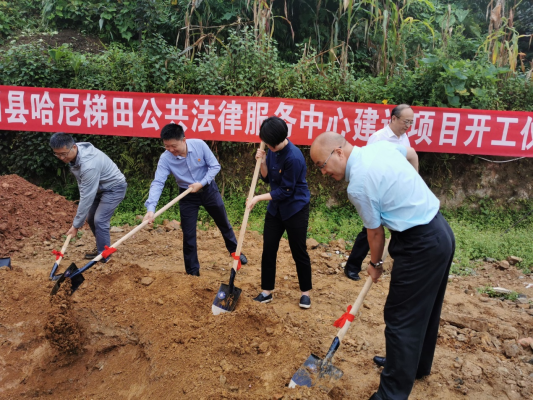 此外,考察组还在新街镇参加了由徐汇区司法局、元阳县哈尼梯田公共法律服务中心开工仪式,元阳哈尼梯田公共法律服务中心项目建设将惠及新街镇及哈尼梯田核心区的34个村委会2个社区225个自然村,惠及建档立卡贫困户9120户41779人,将为梯田核心区常住人口和流动人口提供法治宣传、涉外法律服务等公共法律咨询服务。