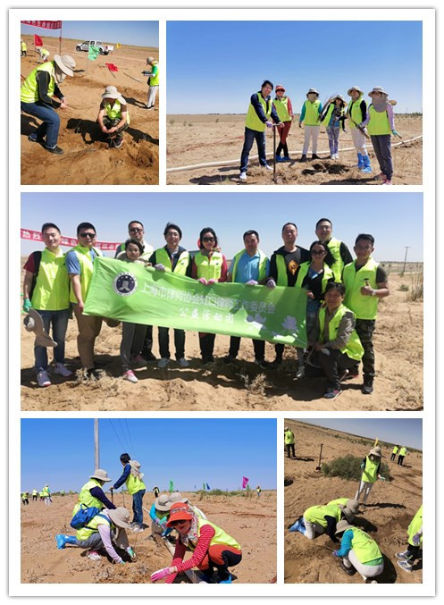 6月7日至10日,虹口律工委招募来自上海捷铭律师事务所、上海市光大律师事务所、上海众华律师事务所、北京市世纪(上海)律师事务所、北京观韬中茂(上海)律师事务所、上海勤周律师事务所、上海德传律师事务所的15位律师的组成虹口区律师绿色志愿团参与到“大地妈妈”——易解放的沙漠公益植树活动之中。
