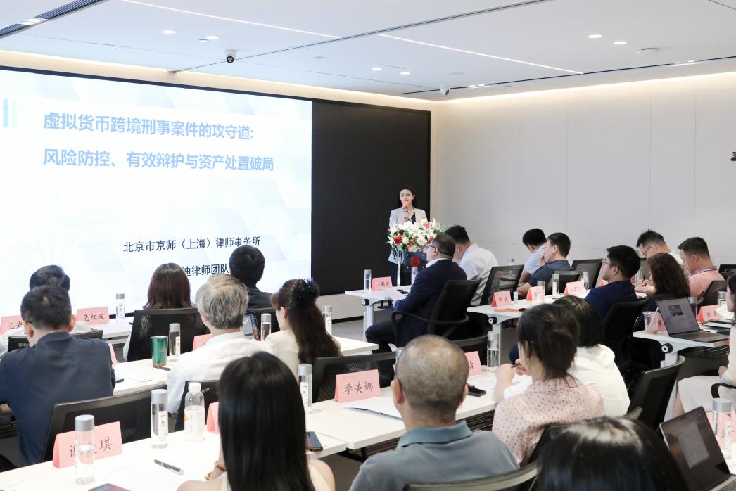 京师上海律所合伙人、京师律所(全国)刑委会数字经济犯罪研究中心主任霍惟迪的分享主题为《虚拟货币跨境刑事案件的攻守道:风险防控、有效辩护与资产处置破局》。霍惟迪律师提出虚拟货币去中心化、技术复杂性和跨境流通性三大特征使其天然易被犯罪利用,并结合数据剖析了虚拟货币犯罪案件的痛点及处理方法。她梳理了部分国家和国际组织针对虚拟货币的监管政策,重点总结了我国虚拟货币涉嫌犯罪的主要情形和相关罪名。在辩护思路方面,霍律师从法律属性、主观明知、取证审查、跨境管辖、罪名竞合、政策结合六大维度展开讨论,并围绕具体罪名分享了辩护破局思路。随后,她从传统处置路径的困境、北京模式、香港的“三重接口”功能出发,探析了涉案虚拟货币跨境处置创新路径的挑战及未来优化。最后,霍惟迪律师分享和发布了其团队打造的法律服务产品“跨境虚拟货币刑事风险与辩护一站式法律服务”,详细介绍了其产品内容、特色、服务对象及优势。