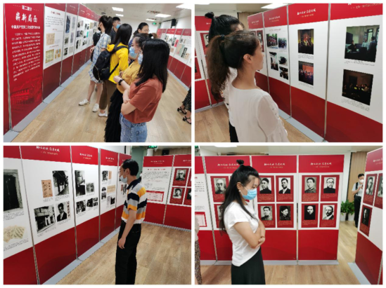 展览分为伟大开端、崭新局面、力量之源等三大部分,选取了中共一大、二大会址纪念馆与中共四大纪念馆的馆内精华,精心挑选了三百多张史料照片,再现中国共产党筚路蓝缕的奋斗历程,全面展示了中国共产党在上海孕育、诞生、发展、壮大的光荣历史,展现中国共产党人为上海城市精神所注入的红色基因。支部党员在参观学习中,追忆中国共产党在上海留下的红色印迹,回顾革命前辈艰苦卓绝的奋斗岁月。党员同志们不时驻足观看,不时讨论交流、深刻感悟革命前辈们的爱国精神。