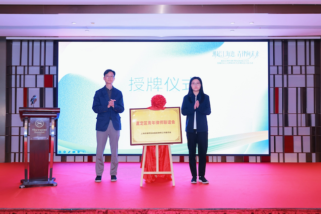 在全体嘉宾的见证下,嘉定区团委副书记王梦云区司法局四级调研员张磊共同为“嘉定区青年律师联谊会”揭牌。红绸揭开的,不仅是牌匾,更是嘉定青年律师团结协作、携手奋进的新篇章。