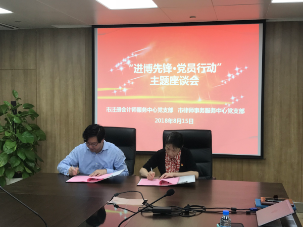 本次主题座谈会旨在立足岗位实际,相互学习借鉴,进一步提升行业服务管理的能级和水平。会上集体学习了李强同志在进口博览会全市动员会、工作现场会、“冲刺100天,决胜进博会”誓师动员大会上的重要讲话精神。由两家党支部的支部书记、副书记分别介绍支部概况和行业背景。接着,由注会、资产评估评估、律师三个行业协会相关负责同志就行业管理和服务会员的主要做法及成效开展交流分享。在主题讨论环节,与会的党员同志坚持问题导向,紧密结合自身工作实际,针对“行业党建”“行业治理”“行业管理”等议题进行了充分有效的沟通交流,在思维碰撞中收获工作启示。最后,由党员代表宣读《进博先锋行动倡议书》,两位支部书记代表本支部共同在《倡议书》上签字。会后,大家还一同参观了两家单位的对外服务窗口,并做了进一步的交流学习。