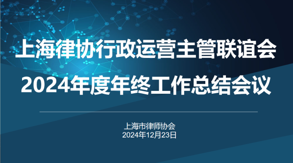 2024年12月23日下午,上海律协行政运营主管联谊会在上海璟和律师事务所召开2024年度年终工作总结会议。会议由上海律协律所规范与发展委员会副主任周晶敏主持,近20位本市律所行政运营主管参加了会议。上海律协公共关系部相关人员、律所规范与发展委员会干事劳嘉馨列席会议。