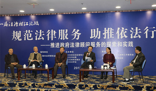 专家论坛环节,市政府法制办副主任刘平、市律协会副会长周天平、区政府法制办主任桂丽丽、区政府法律顾问团成员、法学专家沈福俊、诚至信律师事务所高级合伙人戴国庆律师分别对上述发言作了点评,并与现场人员进行交流互动。刘平指出,松江是全市第一批推行新的政府法律顾问制度的单位之一,三年实践下来,初步建立完善了工作机制,应当认真总结并加以推广,希望松江经验能够走在全市前列。周天平建议松江律工委就规范政府法律顾问工作进一步细化研究,并向市律师协会提交提案,推动行业协会政府法律顾问工作服务指南的编撰工作。沈福俊分享了国外政府法律顾问的相关制度、做法,认为松江区政府法律顾问工作的探索实践及本次论坛对推动国内此方面的学术研究非常有意义。桂丽丽介绍了本区即将开展的新一轮区委、区政府法律顾问团和法律顾问储备库选聘工作,她明确表示将认真研究本次论坛形成的意见建议,积极吸纳合理化建议,进一步完善政府法律顾问机制。戴国庆律师作为多年从事政府法律顾问工作的本土律师,表达了律师为深化法律服务,助推依法行政的愿望并倡议松江律师共同努力探索,形成可复制的、可推广的经验和做法。