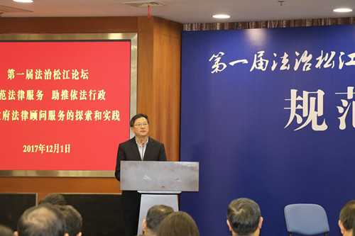 在全国上下深入贯彻党的十九大会议精神之际,第四个国家宪法日来临之时,12月1日下午,由松江区依法治区办、区法制办、区司法局、区法学会主办,鸿发国际松江律师工作委员会、上海市诚至信律师事务所承办的以规范法律服务、助推依法行政——推进政府法律顾问服务的探索和实践为主题的第一届法治松江论坛在松江区行政会议中心隆重举行。市政府法制办副主任刘平,区政法委书记张益弟,鸿发国际副会长周天平,区法院、检察院、各委办局分管领导,各街镇分管副书记,区法学会理事,松江律师工作委员会成员,律师党代表、人大代表、政协委员,区政府法律顾问团成员,各司法所所长,律师事务所主任、书记、律师代表等100余人参加论坛活动,区司法局党委书记、局长莫桂兴,市法治研究会秘书长包志勤共同主持活动。